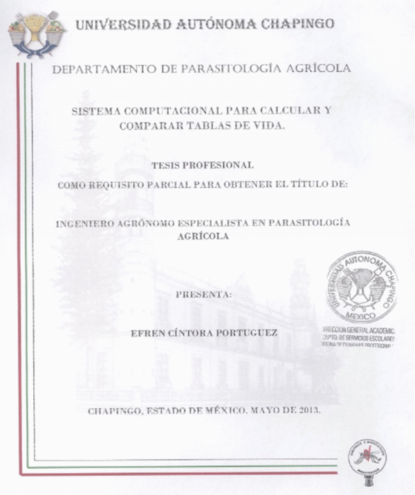 En la Parasitología Agrícola, el uso de tablas de vida y fertilidad, aportan conocimientos de gran utilidad para la comprensión de la estructura y comportamiento de alguna población de interés, ya sea que se trate en un estudio bajos distintas situaciones o meramente para conocer la biología de algunos artrópodos considerados como plaga. En la actualidad esta herramienta es muy poco utilizada, debido a diversos factores como el escaso dominio del tema o por dificultades al construir e implementar una tabla de vida y fertilidad, es por estas razones que en el presente trabajo se planteó como objetivo generar un programa de cómputo (Software) que sea de fácil manejo, comprensión, rápido y confiable para estudiantes, profesores e investigadores del ámbito agronómico y ramas afines. Se generó el programa denominado “TAVyFE”, un programa de computadora capaz de ejecutarse en dos sistemas operativos diferentes (Microsoft y Linux), cuya función es la construcción de hasta cinco tablas de vida y/o fertilidad y la comparación de estas mismas, todo bajo un esquema amigable ante el usuario.