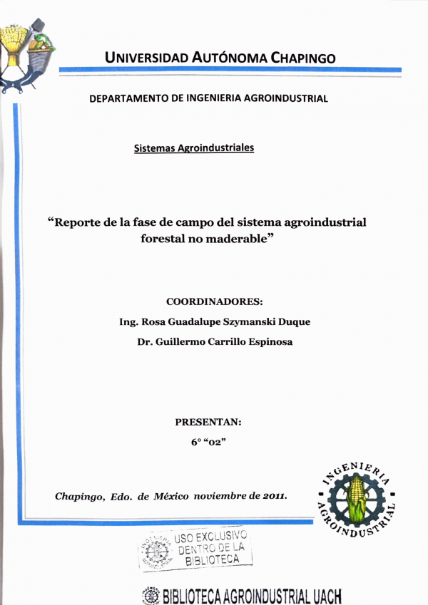 Reporte de la fase de campo del Sistema Agroindustrial forestal no maderable / coordinadores Rosa Guadalupe Szymanski Duque y Guillermo Carrillo Espinosa ; colaboradores Hugo Fernando Amaro Vidal...[et al.]