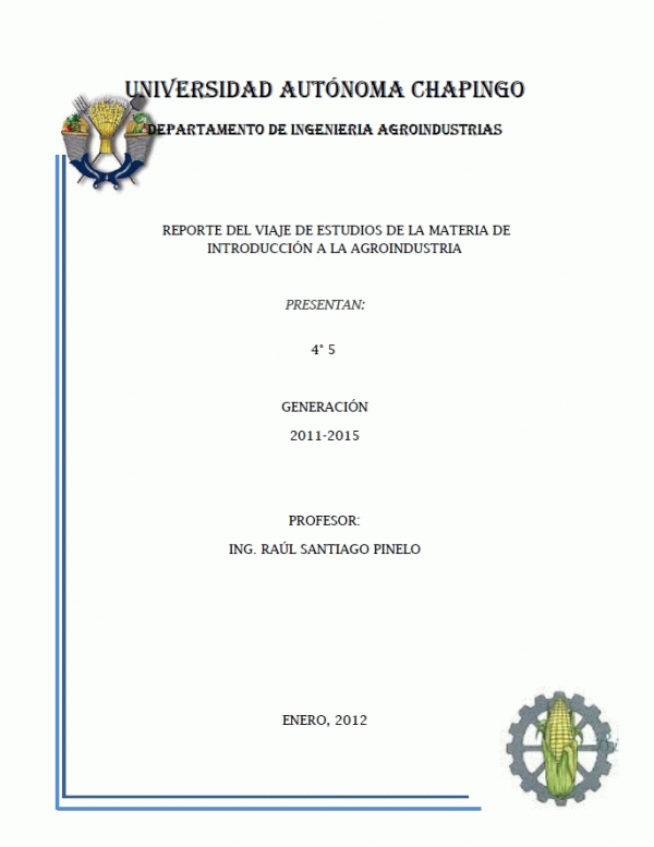 Reporte del viaje de estudios de la materia Introducción a la Agroindustria / coordinador Raúl Santiago Pinelo ; colaboradores Arturo Israel Aragón Martínez...[et al.]