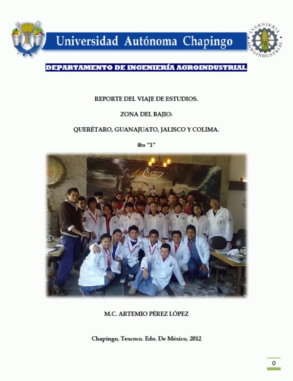 Reporte de viaje de estudios. Zona del bajío : Querétaro, Guanajuato, Jalisco y Colima / coordinador Artemio Pérez López ; colaboradores Michel Aguilar Godínez...[y otros]