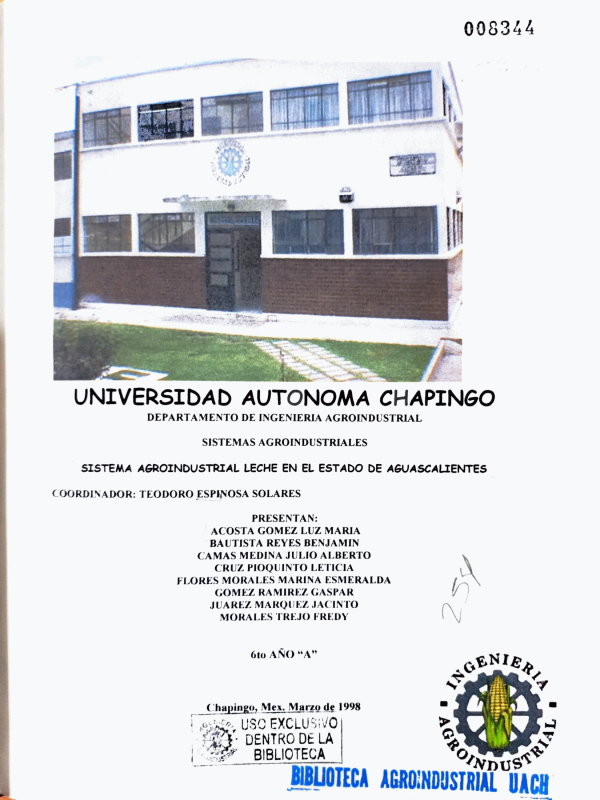 Sistema agroindustrial leche en el estado de Aguascalientes / coordinador Teodoro Espinosa Solares ; colaboradores Luz María Acosta Gómez...[et al.]