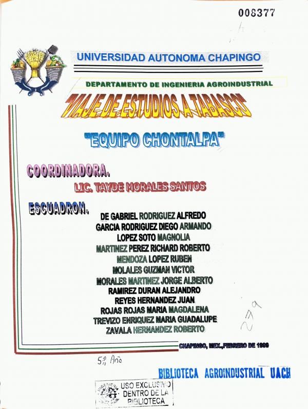 Viaje de estudios a Tabasco / coordinador Tayde Morales Santos ; colaboradores Alfredo de Gabriel Rodríguez...[et al.]