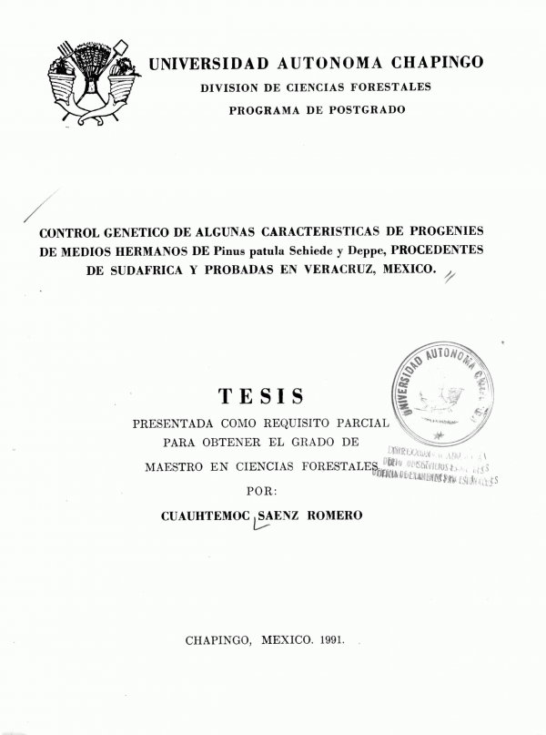 Control genético de algunas características de progenies de medios hermanos de Pinus patula Schiede y Deppe, procedentes de Sudáfrica y probadas en Veracruz, México