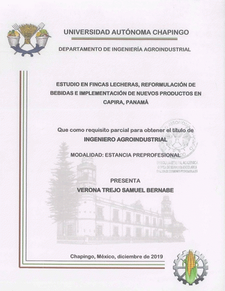 Estudio en fincas lecheras, reformulación de bebidas e implementación de nuevos productos en Capira, Panamá / Samuel Bernabe Verona Trejo