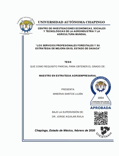 Los servicios profesionales forestales y su estrategia de mejora en el Estado de Oaxaca / por Minerva Santos Luján; director de tesis Jorge Aguilar Avila.