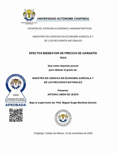 Efectos bienestar de precios de garantía / por Jesús Arturo Limón de; director de tesis Miguel Ángel Martínez Damián