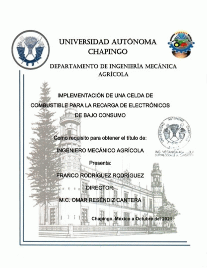 Implementación de una celda de combustible para la recarga de electrónicos de bajo consumo / por Franco Rodríguez Rodríguez, director de tesis Omar Reséndiz Cantera.