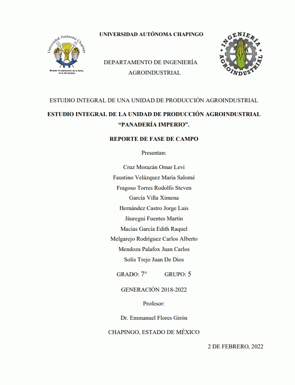 Panadería Imperio / coordinador Emmanuel Flores Girón ; colaboradores Omar Levi Cruz Morazán...[y otros]