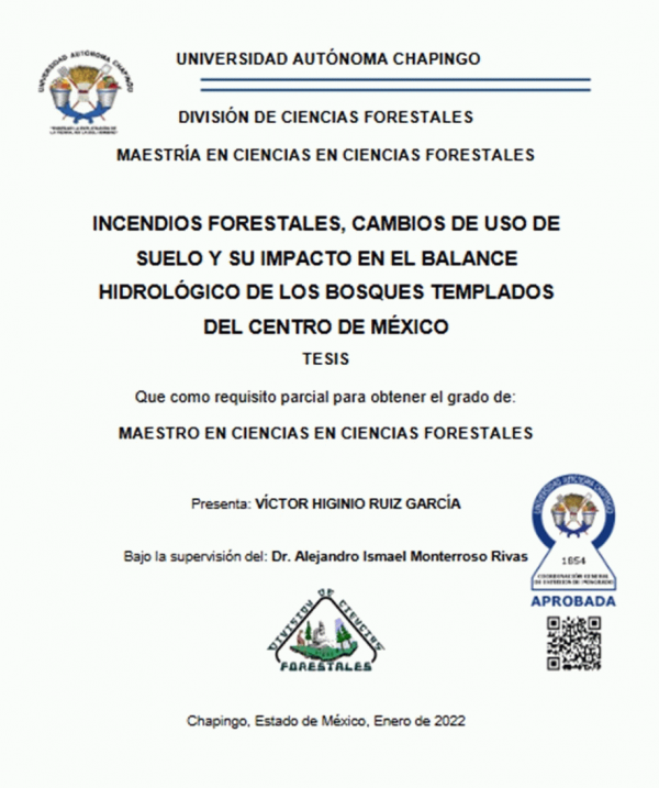 Incendios forestales, cambios de uso de suelo y su impacto en en balance hidrológico de los bosques templados del centro de México / por Víctor Higinio Ruiz García; director de tesis Alejandro Ismael Monterroso Rivas.