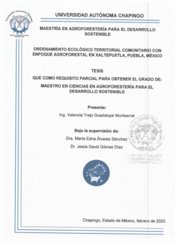 Ordenamiento ecológico territorial comunitario con enfoque agroforestal en Xaltepuxtla, Puebla, México / Por Guadalupe Montserrat Valencia Trejo; director de tesis María Edna Álvarez Sánchez.