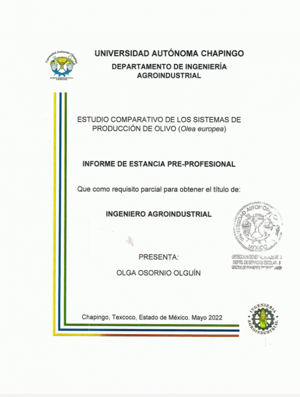 Estudio comparativo de los sistemas de producción de olivo (Olea europea) / Olga Osornio Olguín