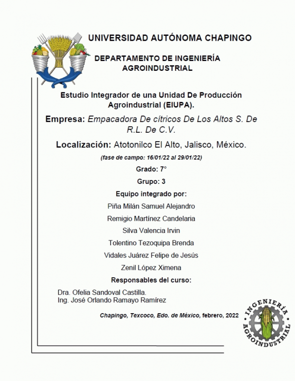 Empacadora de Cítricos de los Altos, S. de R.L. de C.V. / coordinadores Ofelia Sandoval Castilla y José Orlando Ramayo Ramírez ; colaboradores Samuel Alejandro Piña Milán...[y otros]