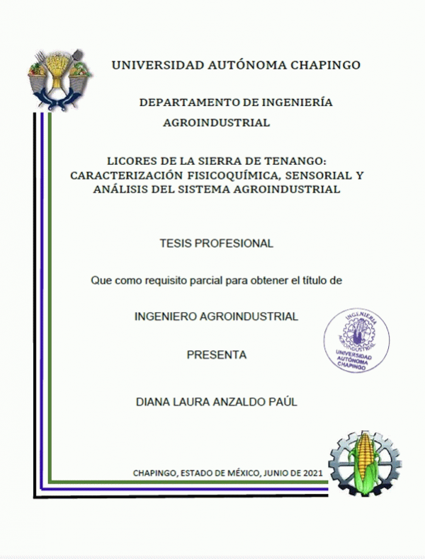 Licores de la sierra de Tenango : caracterización fisicoquímica, sensorial y análisis del sistema agroindustrial / Diana Laura Anzaldo Paul