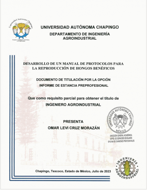 Desarrollo de un manual de protocolos para la reproducción de hongos benéficos / Omar Levi Cruz Morazán