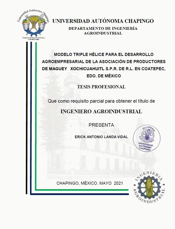 Modelo triple hélice para el desarrollo agroempresarial de la asociación de productores de maguey Xochicuahuitl S.P.R. de R.L. en Coatepec, Edo. de México / Eick Antonio Landa Vidal