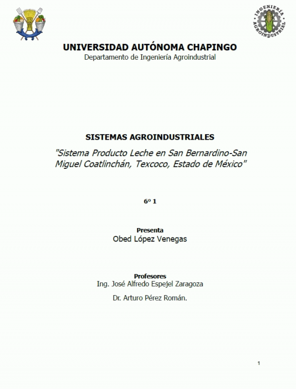 Sistema Producto Leche en San Bernardino-San Miguel Coatlinchán, Texcoco, Estado de México / coordinadores José Alfredo Espejel Zaragoza y Arturo Pérez Román ; colaborador Obed López Venegas