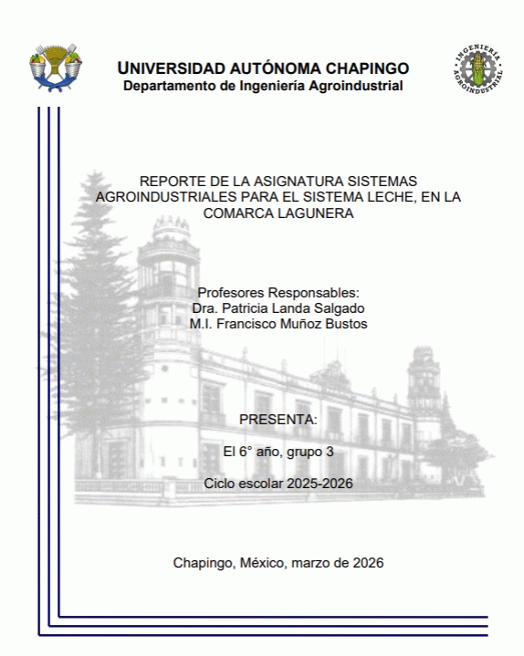 Reporte de la asignatura sistemas agroindustriales para el sistema leche, en la Comarca Lagunera / coordinadores Patricia Landa Salgado y Francisco Muñoz Bustos ; colaboradores Ingrid Michelle Andrade Carrillo...[y otros]