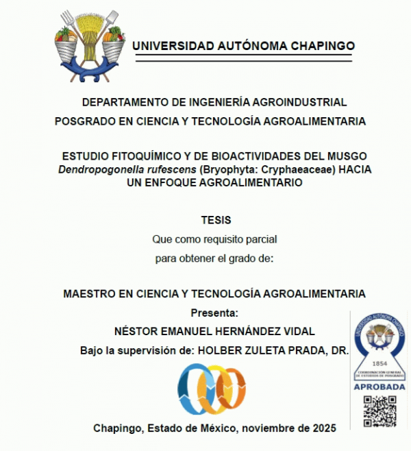 Estudio fitoquímico y de bioactividades del musgo Dendropogonella rufescens (Bryophyta: Cryphaeaceae) hacia un enfoque agroalimentario / Néstor Emanuel, Hernández Vidal