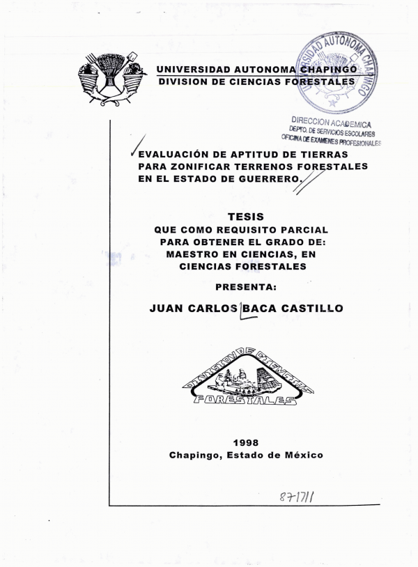 Evaluación de aptitud de tierras para zonificar terrenos forestales en el estado de Guerrero /por Juan Carlos Baca Castillo