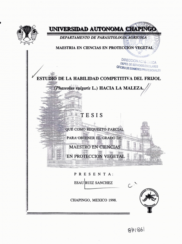 Estudio de la habilidad competitiva del frijol (Phaseolus vulgaris L.) hacia la maleza /por Esaú Ruiz Sánchez