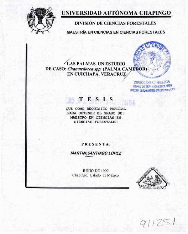 las palmas : un estudio de caso : chamaedorea spp. (Palma camedor) en Cuichapa, Veracruz /por Martín Santiago López