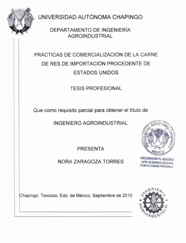 Práctica de comercialización de la carne de res de importación procedente de Estados Unidos /por Nora Zaragoza Torres; directora Ema de Jesús Maldonado Simán