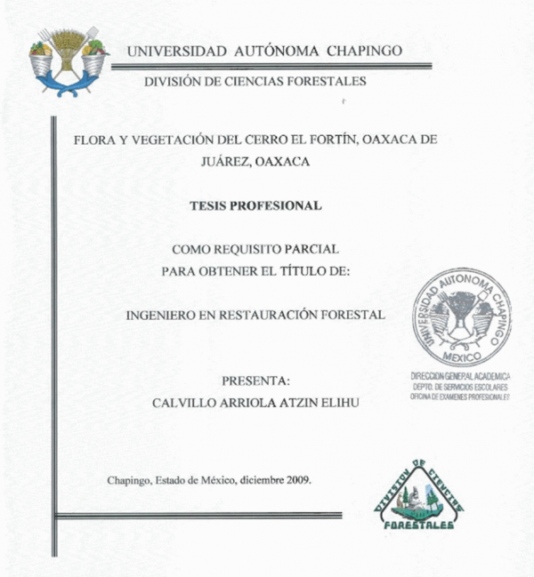 Flora y vegetacion del cerro El Fortín, Oaxaca de Juárez, Oaxaca /por Atzin Elihu Calvillo Arriola; director Enrique Guizar Nolazco
