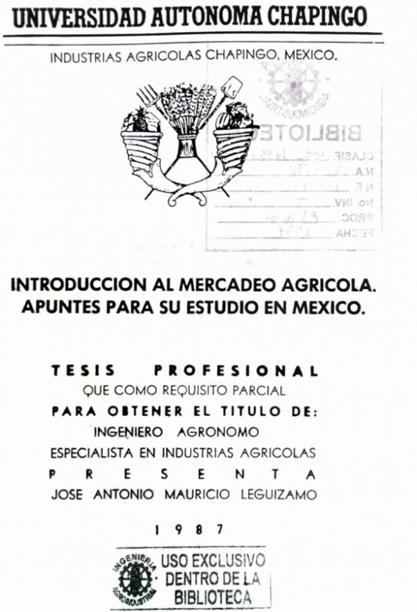 Introducción al mercado agrícola : apuntes para su estudio en México / José Antonio Mauricio Leguizamo by