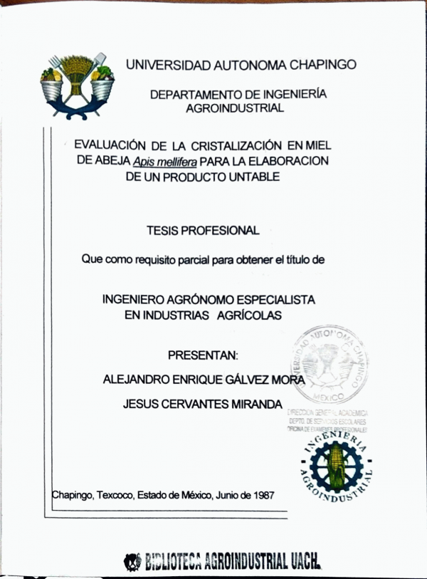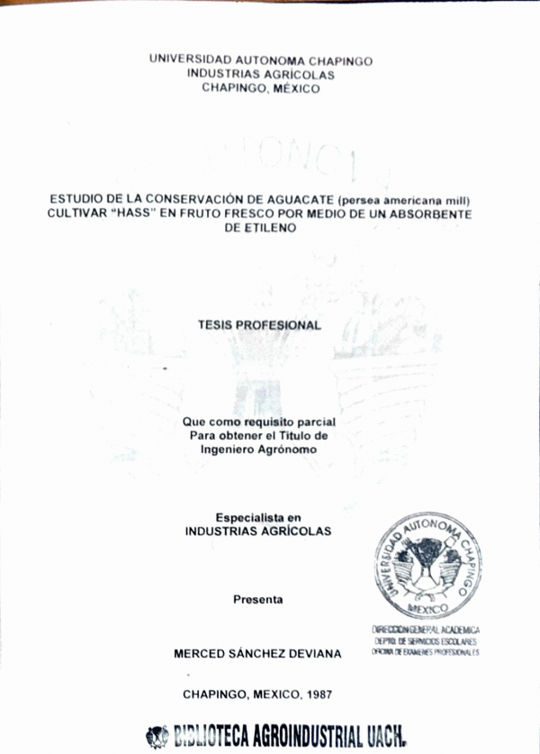 Dissertation note: Tesis (Ingeniero Agrónomo Especialista en Industrias Agrícolas) : (Ingeniero Agroindustrial) -- UACh. Departamento de Industrias Agrícolas : UACh. Departamento de Ingeniería Agroindustrial, 1987