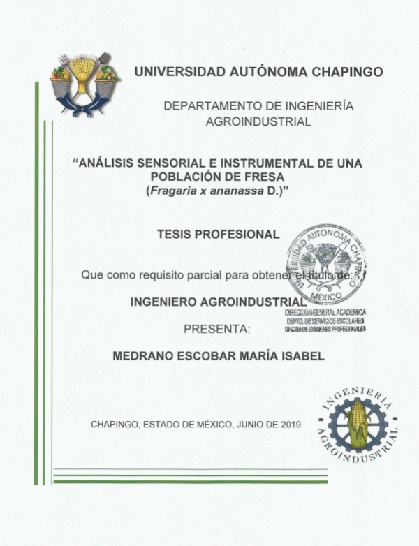 Análisis sensorial e instrumental de una población de fresa (Fragaria x ananassa D.) / María Isabel Medrano Escobar by