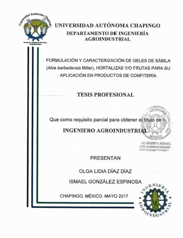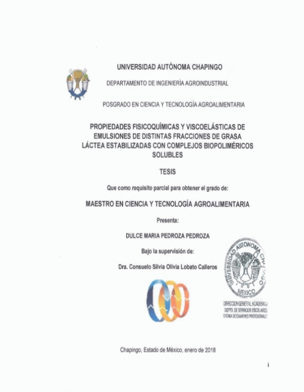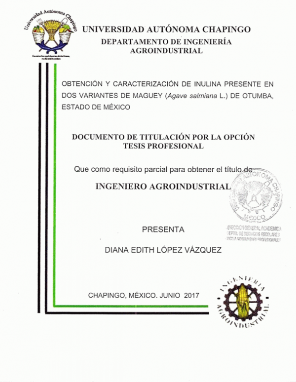 Dissertation note: Tesis (Maestro en Ciencias en Ciencia y Tecnología Agroalimentaria) -- UACh. Departamento de Ingeniería Agroindustrial, 2017