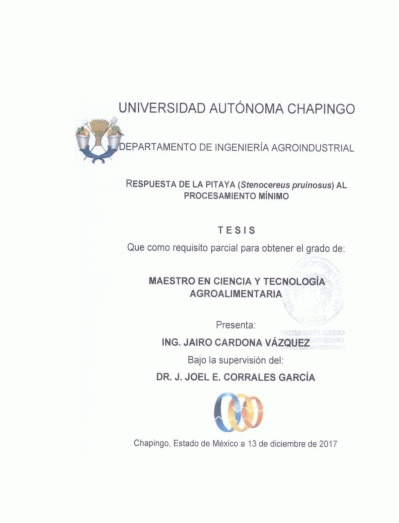 Respuesta de la pitaya (Stenocereus pruinosus) al procesamiento mínimo / Jairo Cardona Vázquez by