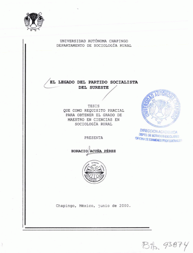 El legado del partido socialista del Sureste /por Horacio Acuña Pérez by