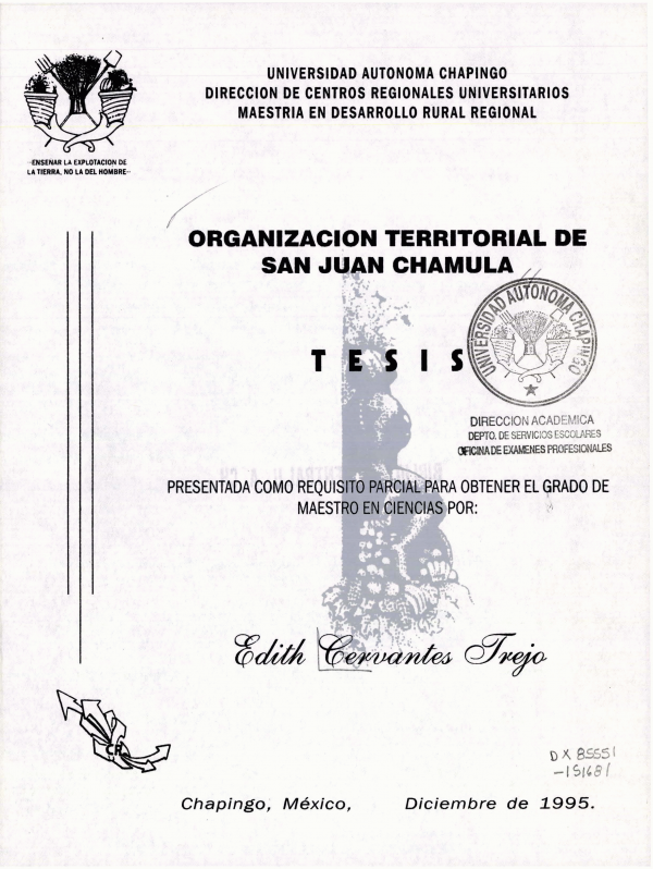 Dissertation note: Tesis (M.C. en Desaarrollo Rural) -- UACH. Dirección de Centros Regionales