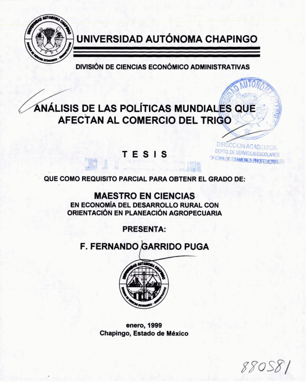 Dissertation note: Tesis (Lic. en Comercio Internacional de Productos Agropecuarios) - - UACH. División de Ciencias Económico Administrativas
