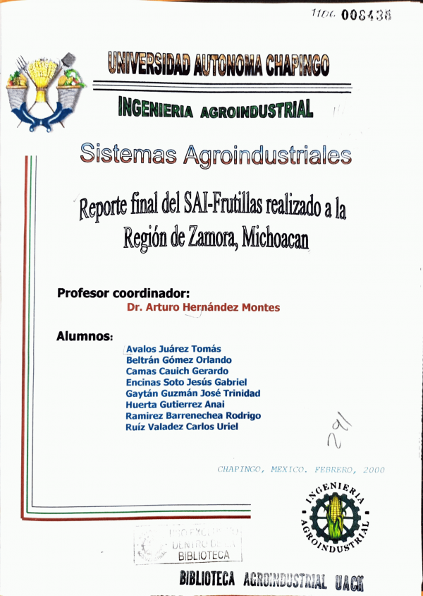 Dissertation note: Tesis (Ing. Agrónomo Especialista en Ingeniería Agroindustrial) UACh