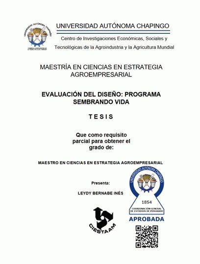 Evaluación del diseño : programa sembrando vida / por Leydy Bernabe Inés; director de tesis Manrubio Muñoz Rodríguez. by