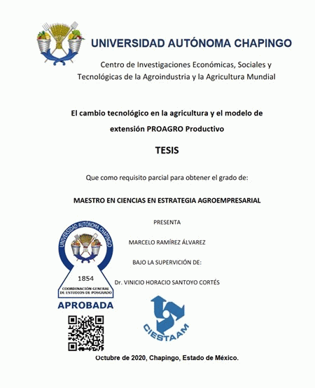 El cambio tecnológico en la agricultura y el modelo de extensión PROAGRO productivo / por Marcelo Ramírez Álvarez by