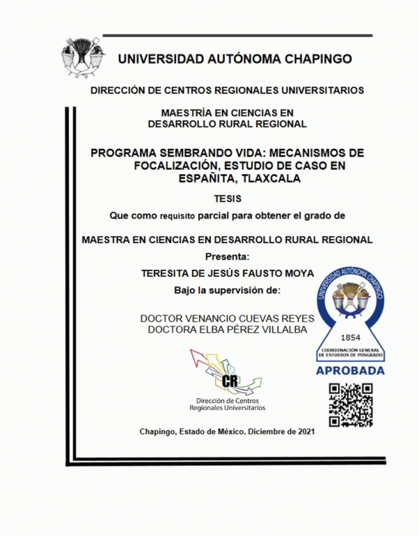 Dissertation note: Tesis (M. C. en Gestión del Desarrollo Rural) -- UACH. Dirección de Centros Regionales Universitarios