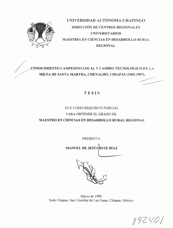 Dissertation note: Tesis (M.C. en Desaarrollo Rural) -- UACH. Dirección de Centros Regionales