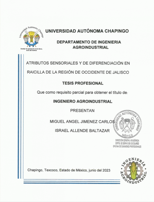 Dissertation note: Tesis (Maestro en Ciencia y Tecnología Agroalimentaria) -- Departamento de Ingeniería Agroindustrial, 2023 Maestría
