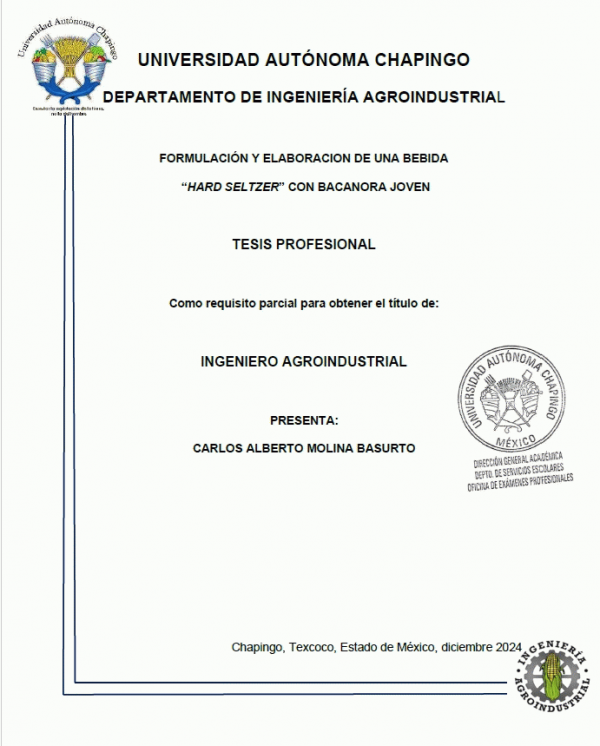 Formulación y elaboración de una bebida “hard seltzer” con bacanora joven / Carlos Alberto Molina Basurto by