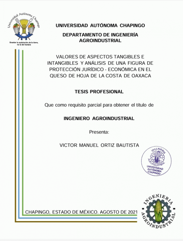 Dissertation note: Tesis (Ingeniero Agroindustrial) -- Departamento de Ingeniería Agroindustrial, 2022 Licenciatura