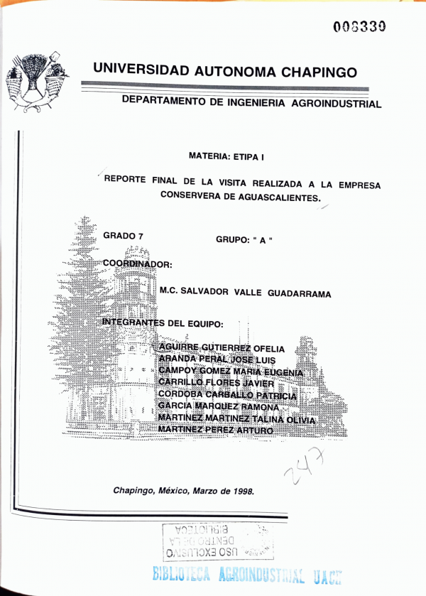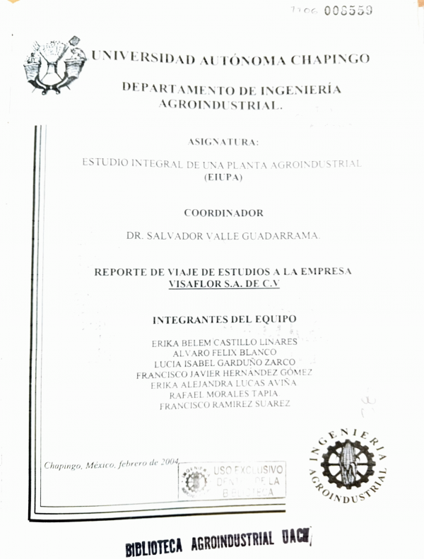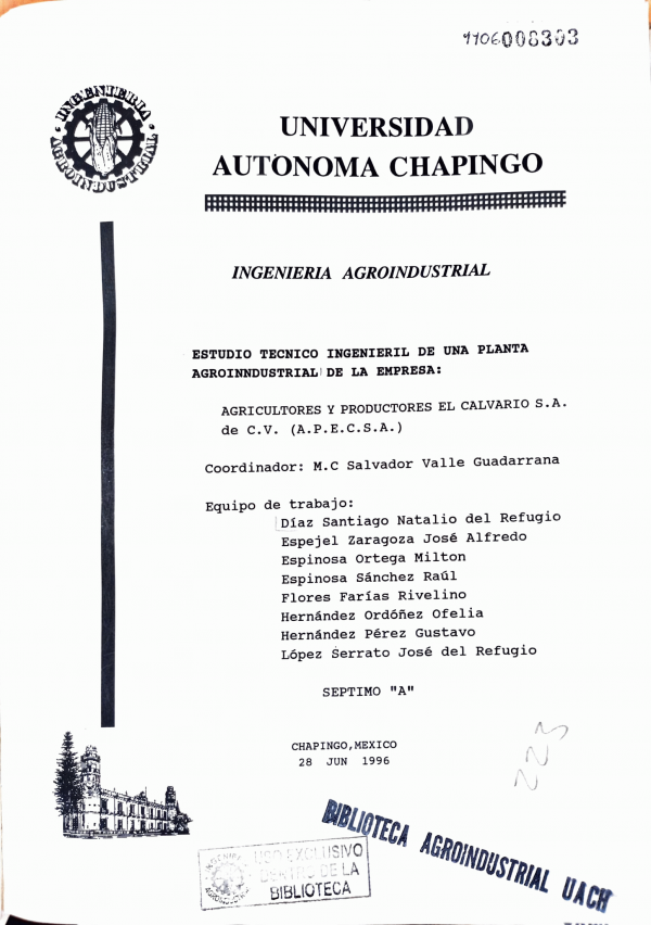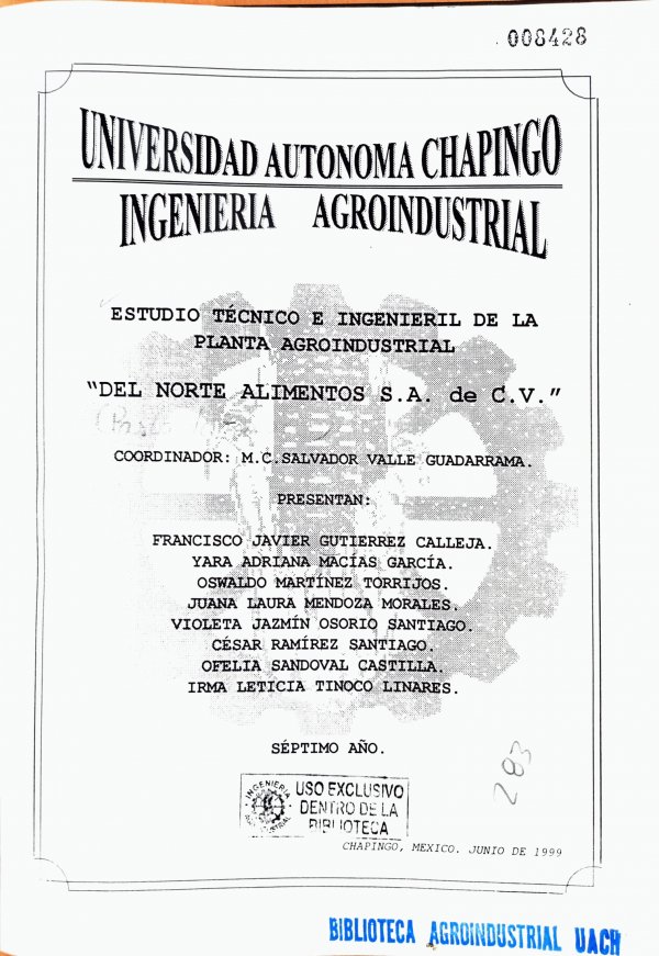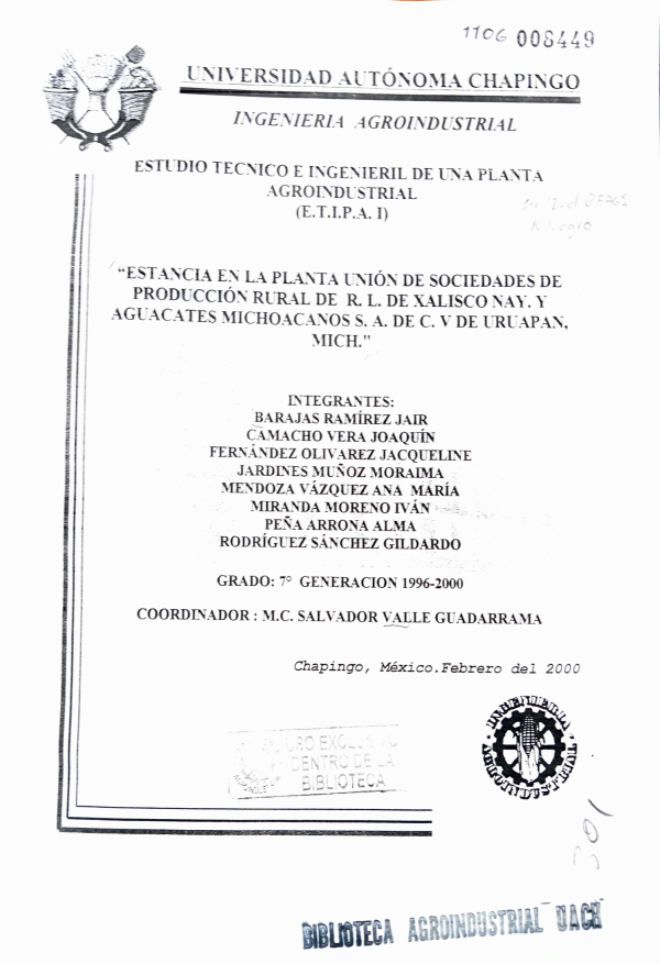 Dissertation note: Tesis (Ingeniero Agroindustrial) -- Departamento de Ingeniería Agroindustrial, 2024 Licenciatura