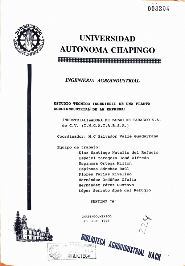 Availability: Items available for loan: Biblioteca Digital (1)Call number: Tesis digital. Ingenieria Agroindustrial (1).