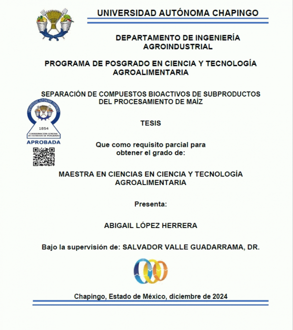 Separación de compuestos bioactivos de subproductos del procesamiento de maíz / Abigail López Herrera by