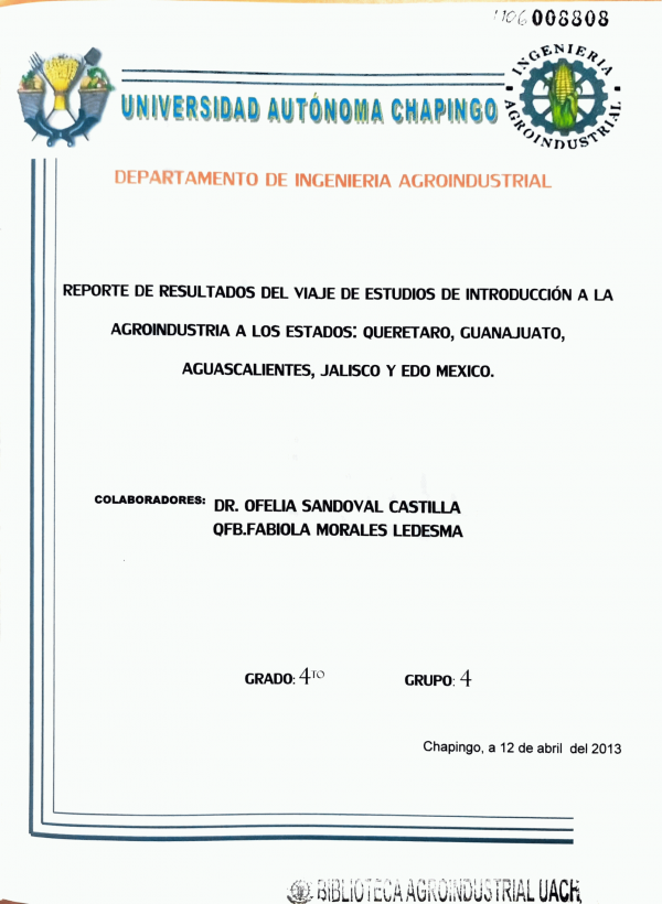 Dissertation note: Informe de Estancia Preprofesional (Ingeniero Agroindustrial) -- Departamento de Ingeniería Agroindustrial, 2025 Licenciatura