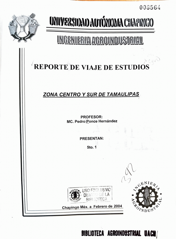 Reporte de viaje de estudios a la región centro-sur de Tamaulipas / coordinador Pedro Ponce Hernández by