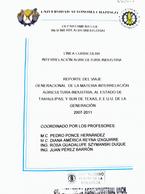 Dissertation note: Viaje de Estudios (IAI) -- UACh. Departamento de Ingeniería Agroindustrial, 2008