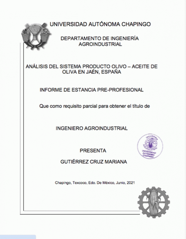 Análisis del sistema producto Olivo – aceite de Oliva en Jaén España / Mariana Gutiérrez Cruz by